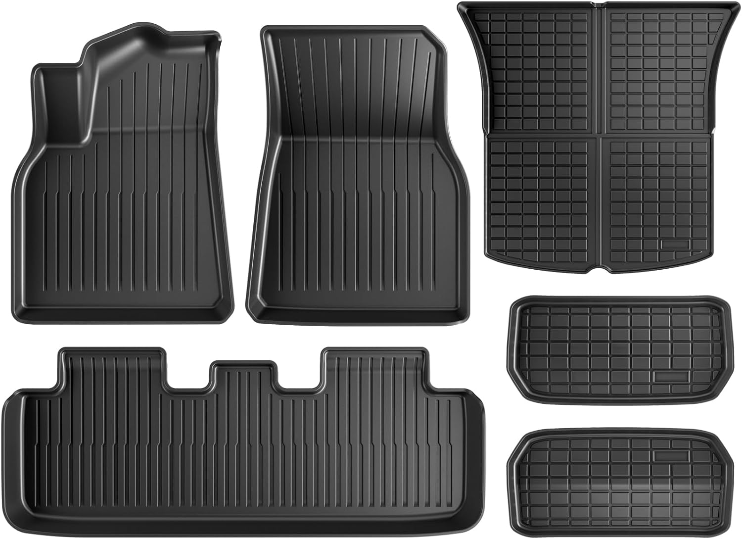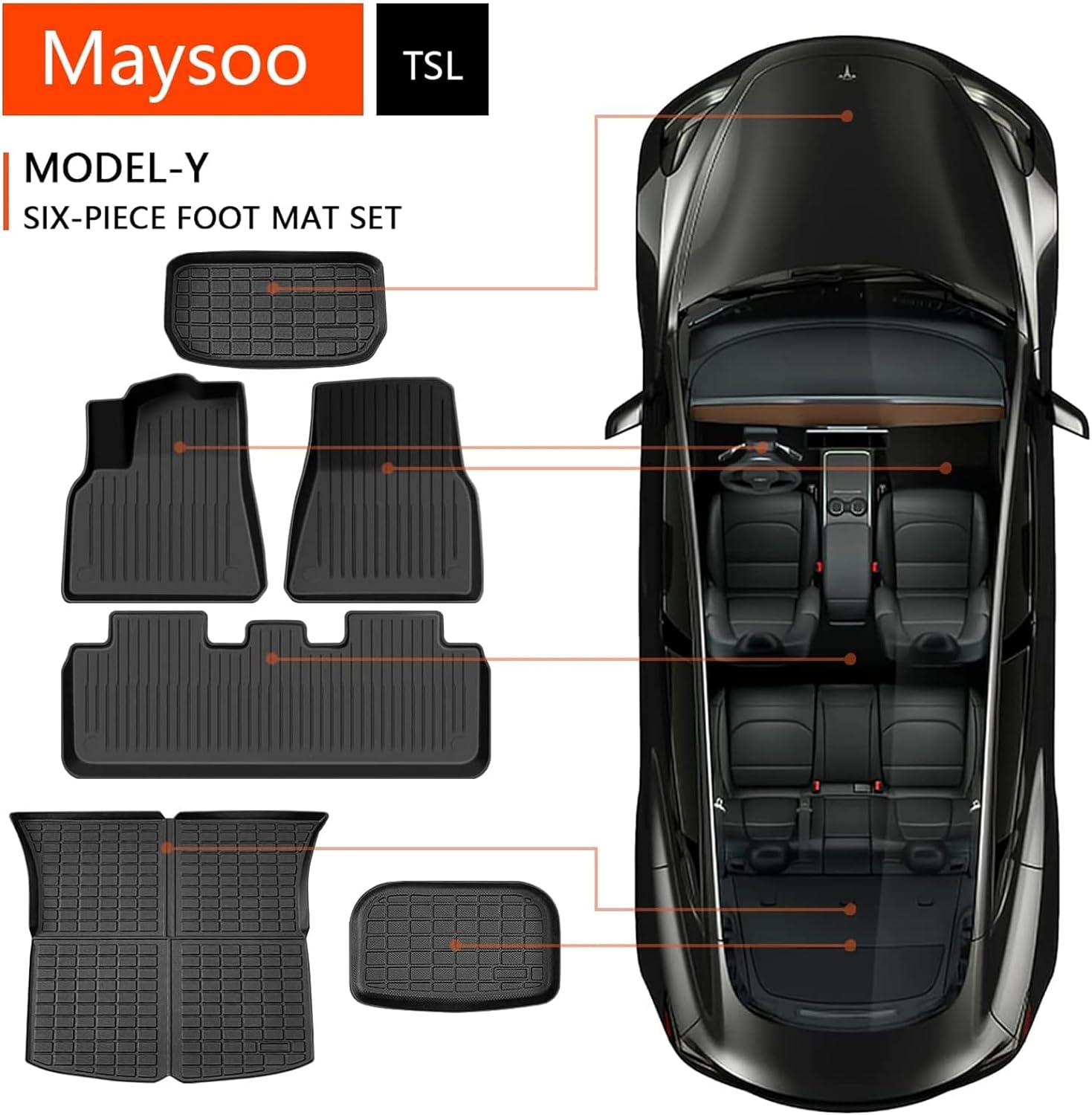 Maysoo Floor Mats for Tesla Model Y 2024-2020 All Weather TPE Cargo Liner Floor Mats and Cargo Trunk Mats Accessories (Set of 6)