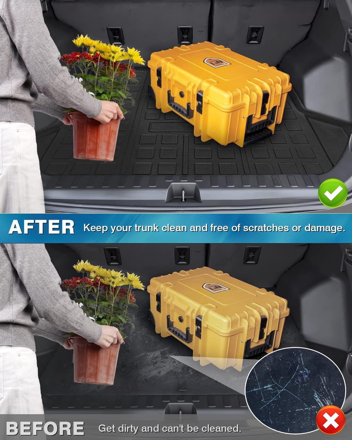 - Anti-slip & Stain-resistant: The unique non-slip chain textured surface surrounded by high edges gives extra protection to your cargo area. With the protection of the trunk liner, you do not have to worry about the luggage scratching or staining the original carpet.