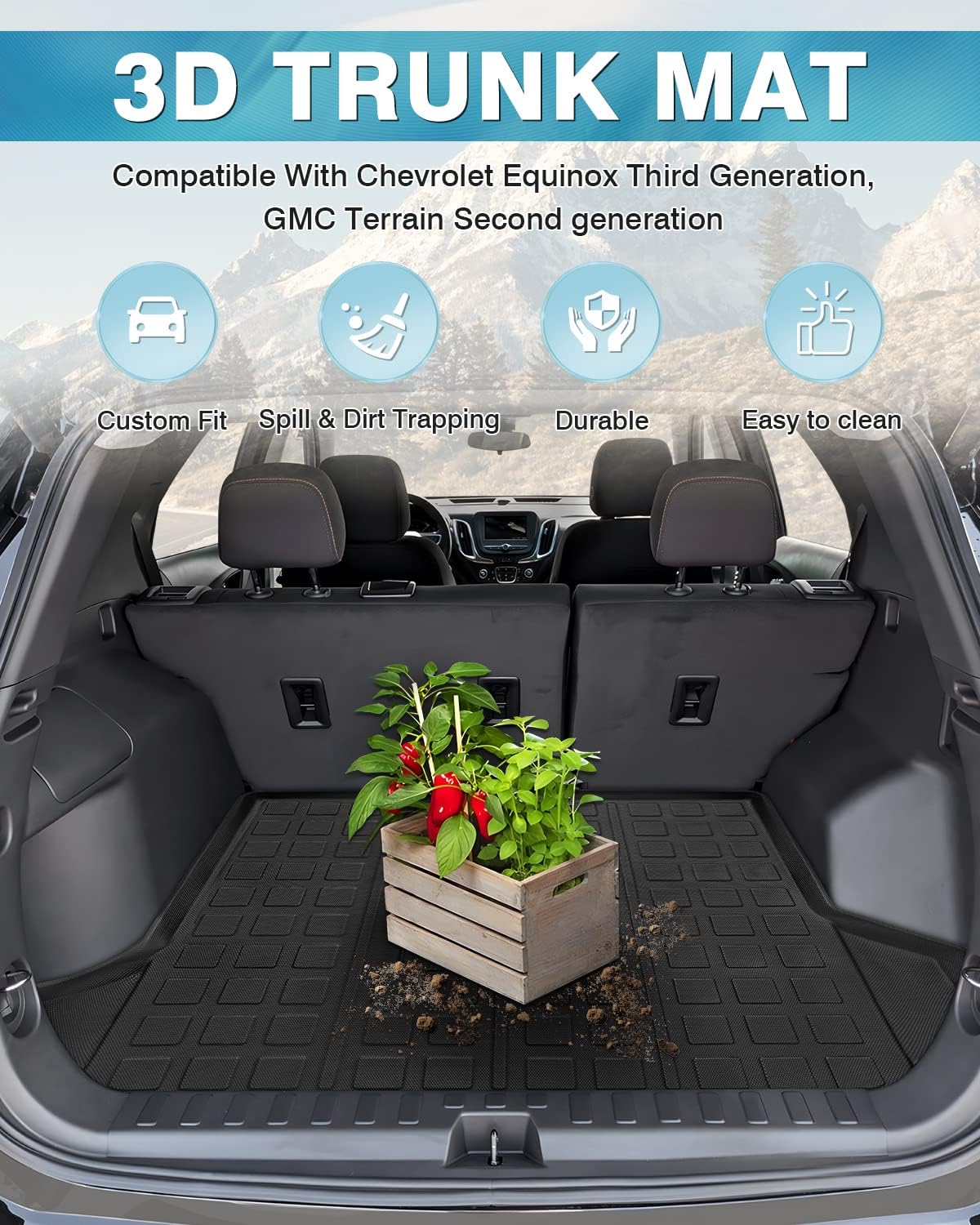 - Custom Fit for Chevy Equinox/GMC Terrain: 3D data molding, the trunk mat is compatible with 2018 2019 2020 2021 2022 2023 2024 Chevrolet Equinox/GMC Terrain all models.