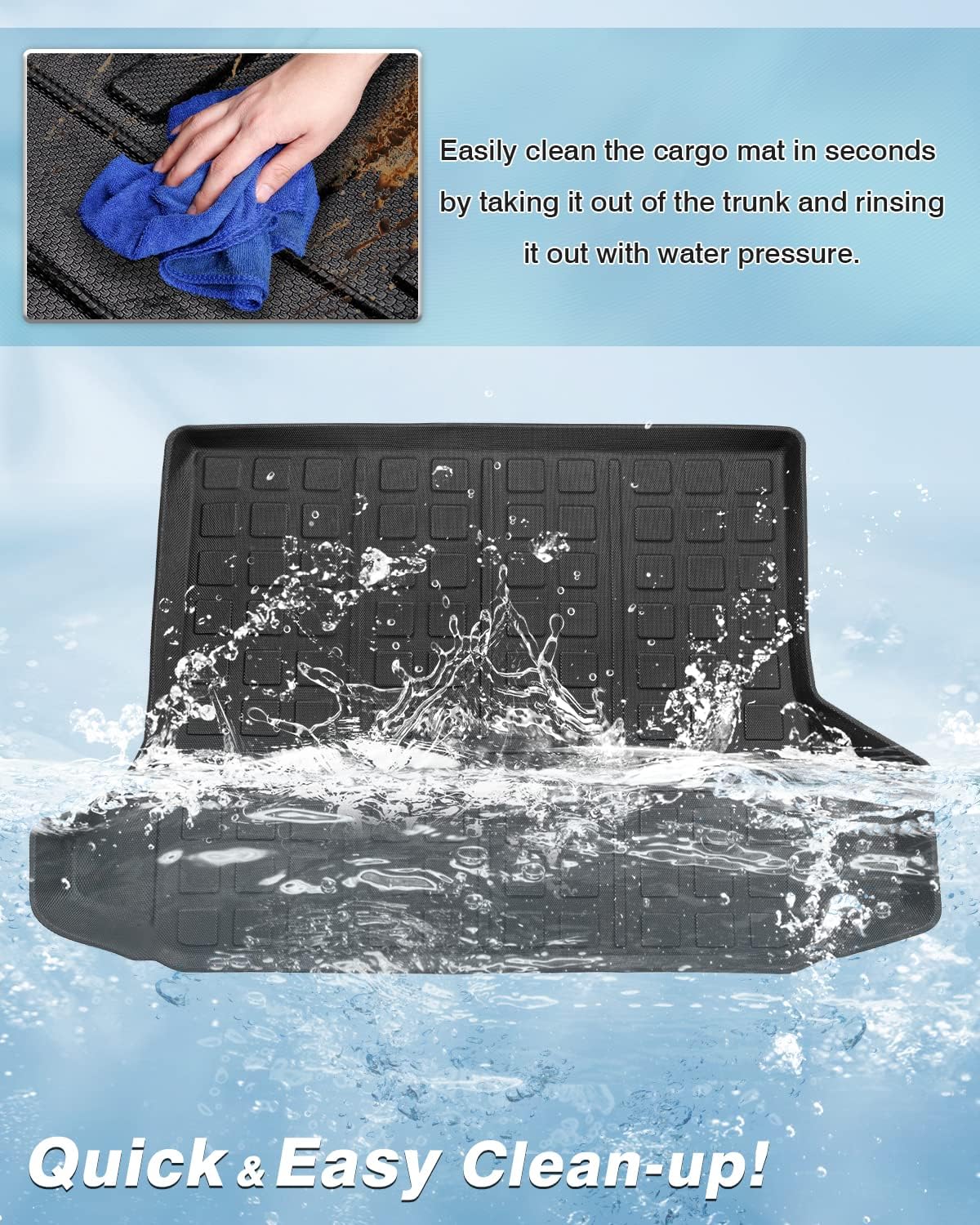 - Easy to Clean: The waterproof design can effectively prevent sewage from flowing into your car's carpet floor. No worries about muddy shoes or food making your car dirty! The cargo mat can be rinsed with water directly.