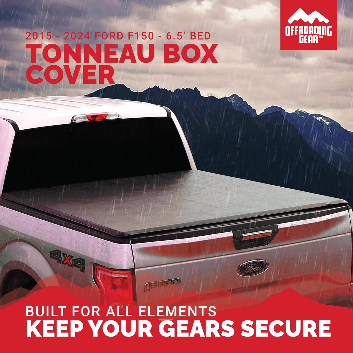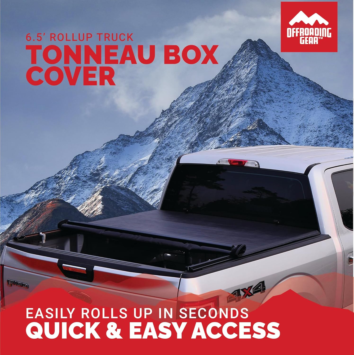 Offroading Gear 4x4 Rollup Truck Tonneau Box Cover | for Ford F150 2015-2024 | Fits Standard Short Bed 6.5' | Heavy-Duty| Waterproof| Dust-Resistant|
