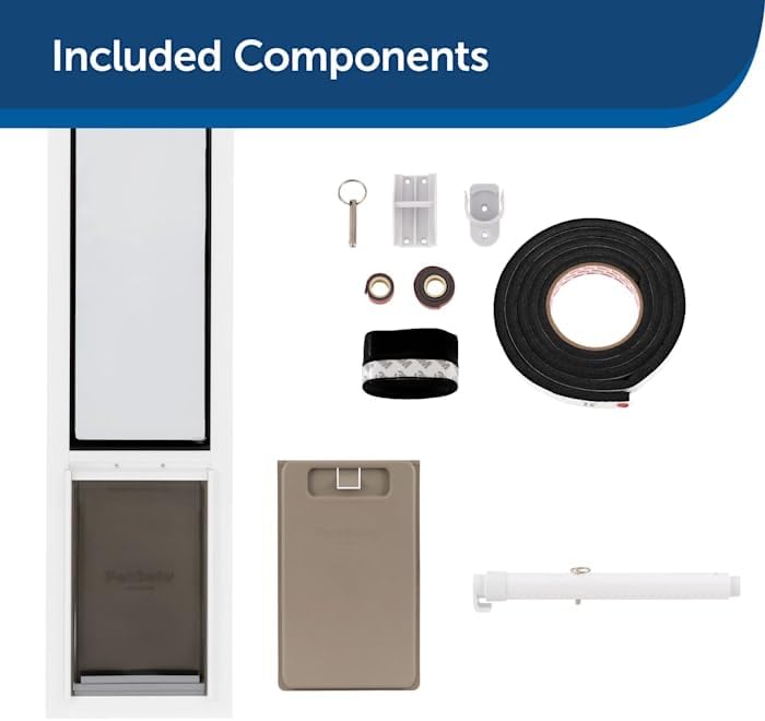 - PERFECT FOR RENTERS: This pet door is easy to install and detach; uses the included adhesive strips so you can easily take it with you if you and your pet move, Lock your human sliding glass door and flap opening with the included security bar and closing panel