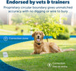 - 3/4 acre of circular coverage: sets up in just 1-2 hours and creates a circular boundary that covers up to a 3/4-acre yard (22-105 ft in all directions) from the placement of the indoor transmitter