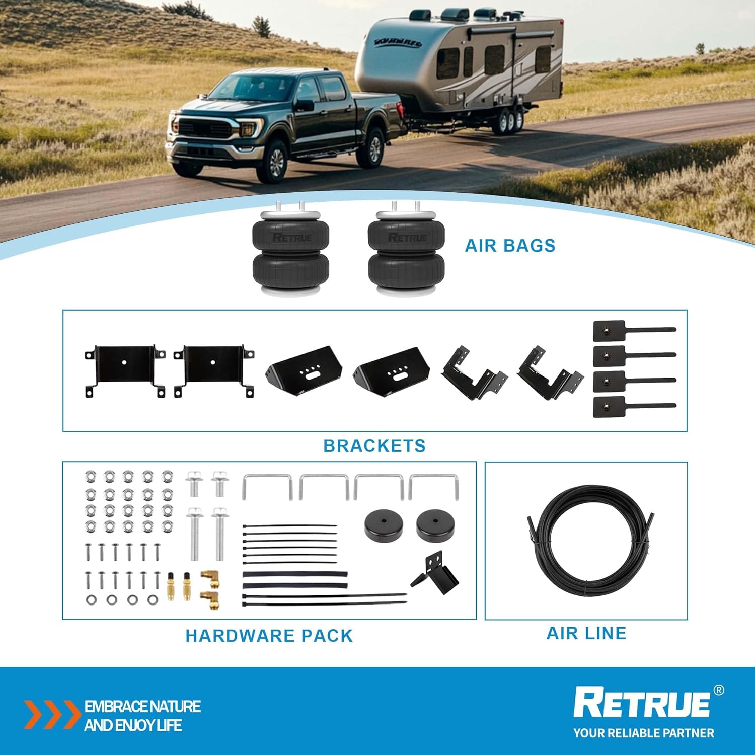 Rear Air Bags Suspension Kit for 2015-2025 Ford F150 Truck Towing, 5000 Lbs of Load Leveling Capacity, Replacement for Firestone 2582 Ride Rite Airbags for Trucks Rear Suspension