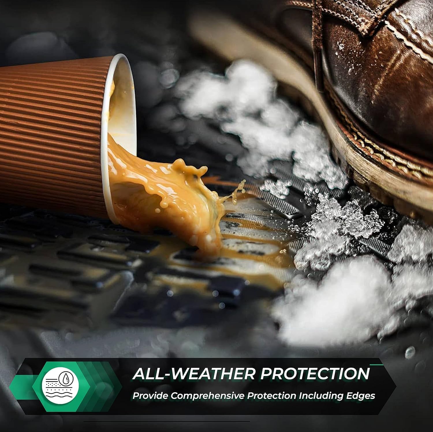 - [ TPE MATERIAL & DURABLE ]: RizLiner car mats are made of 100% TPE material. Rubber floor covers are eco-friendly, completely non-toxic, odorless and durable. The vehicle mat are resistant to -58 and 176 Fahrenheit.