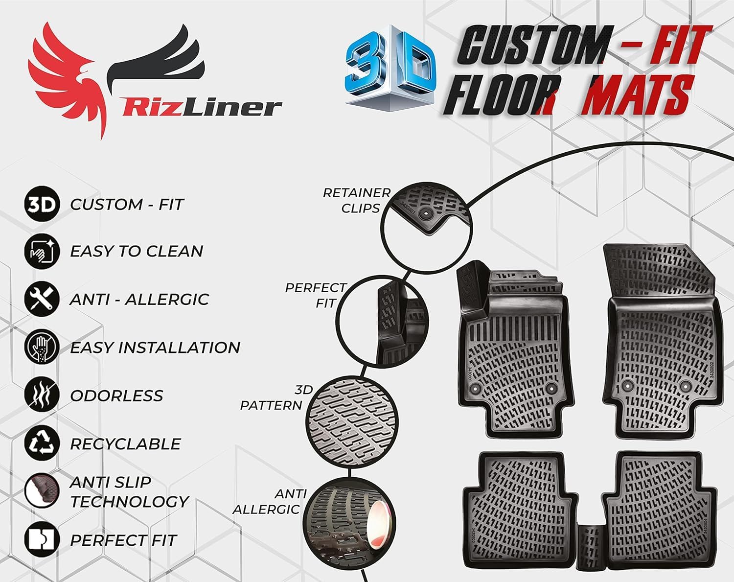 - [ PRECISE FIT ]: RizLiner floor mats liners using 3D laser scanning technology ensures perfect fit to the car trunk floor with custom design.