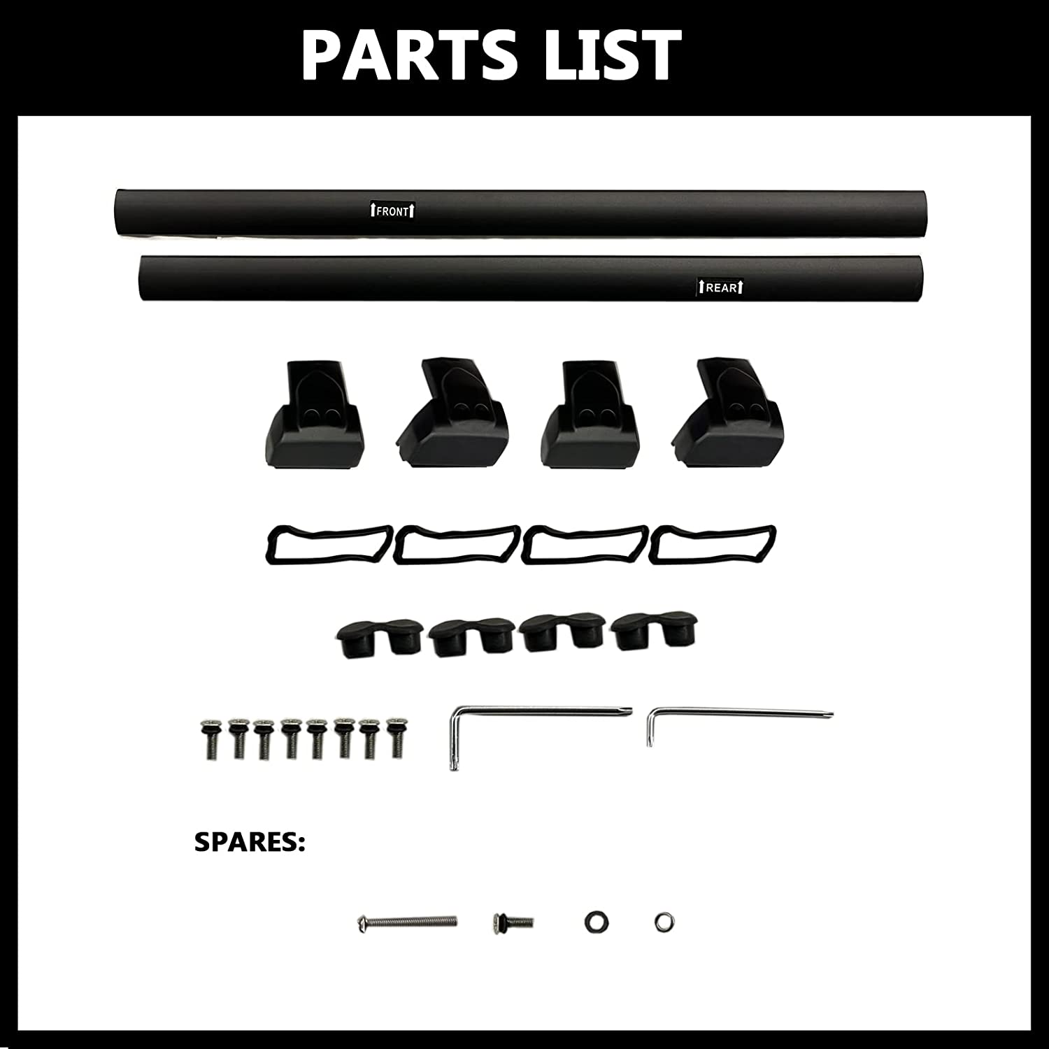 - EASY TO INSTALL Easy to assemble & remove in minutes, no drilling/cutting required. Bolted directly to roof pre-set. Package comes with a pair of crossbars & instruction, enhance the overall visual appeal, give your vehicle an aggressive look.