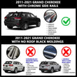 Fits 2011 – 2021 Jeep Grand Cherokee with chrome side rails.