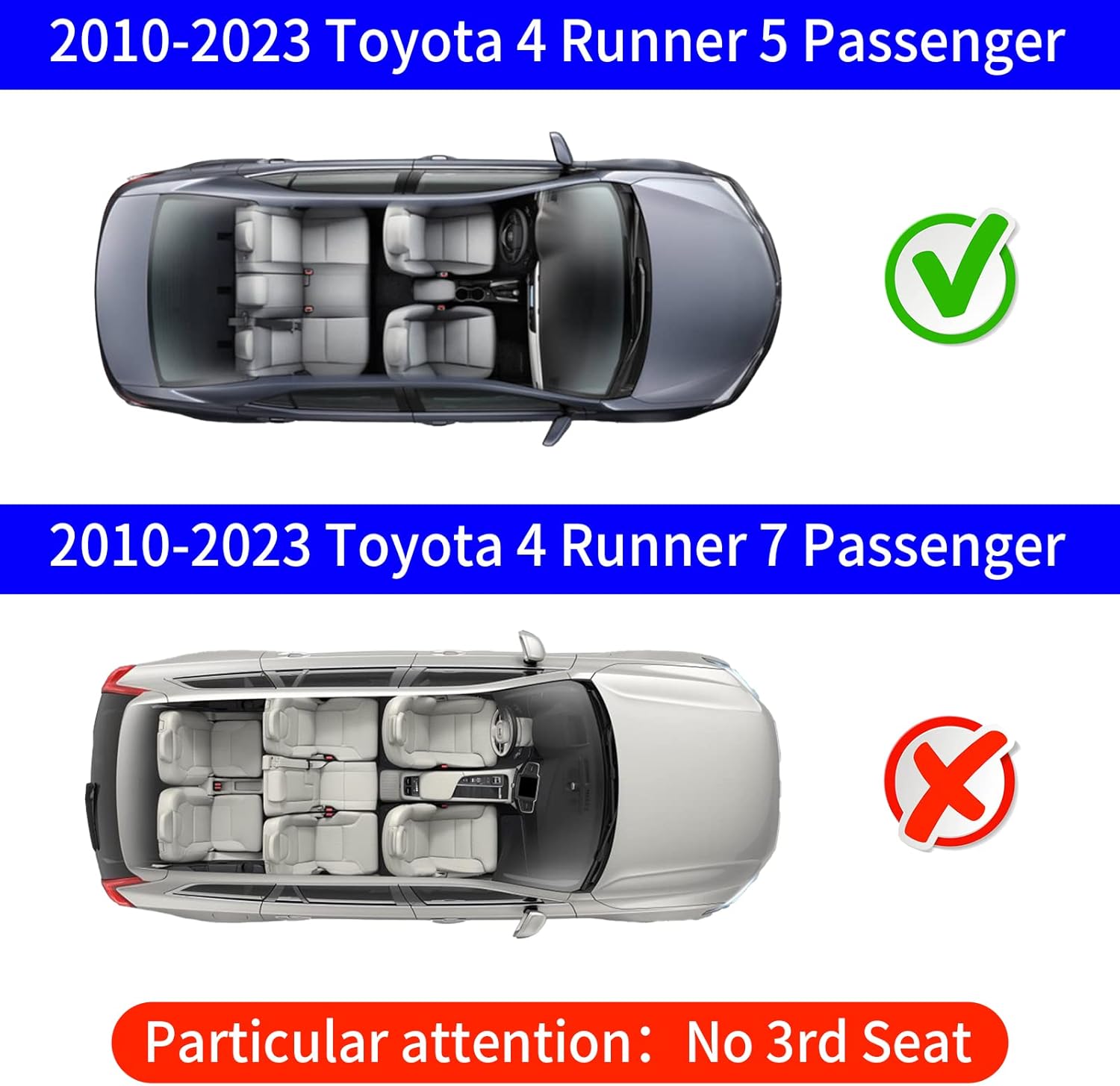 - Fitment: Backrest mats are suitable for 5 Seat Toyota 4 Runner 2010-2024.NOTE:Only fit 5 Seat Toyota 4 Runner,No 3rd seat and No Sliding Cargo Deck,not suitable for 7 seats.
