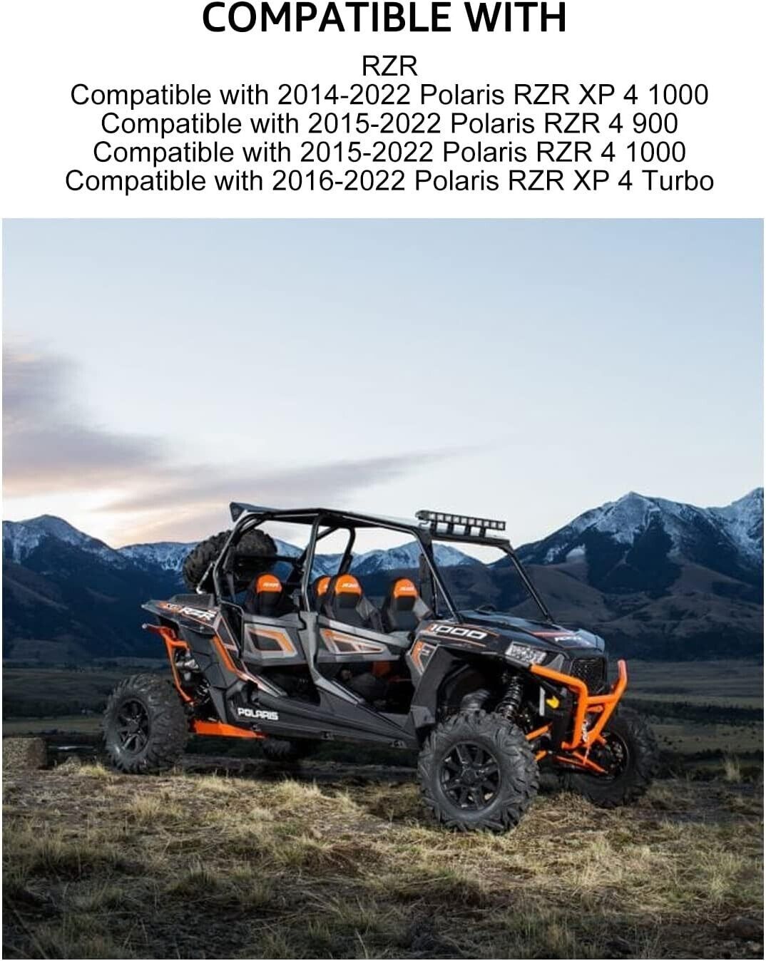 * RZR Roof Fitment: This RZR XP 4 1000 roof is compatible with 2020-2022 RZR XP 4 Turbo/ XP 4 1000/S4 1000; 2019 RZR XP 4 Turbo/XP 4 1000/S 4 1000; 2018 RZR XP 4 Turbo/S4 900/ XP 4 1000; 2017 RZR 4 900/XP 4 1000/Turbo; 2015-2016 RZR 4 900;2014-2016 RZR XP 4 1000