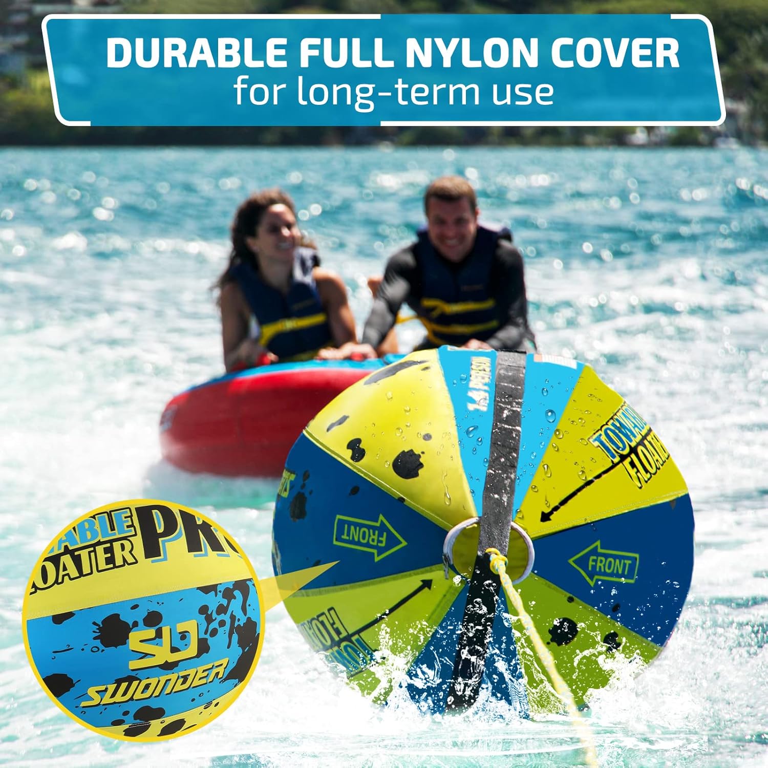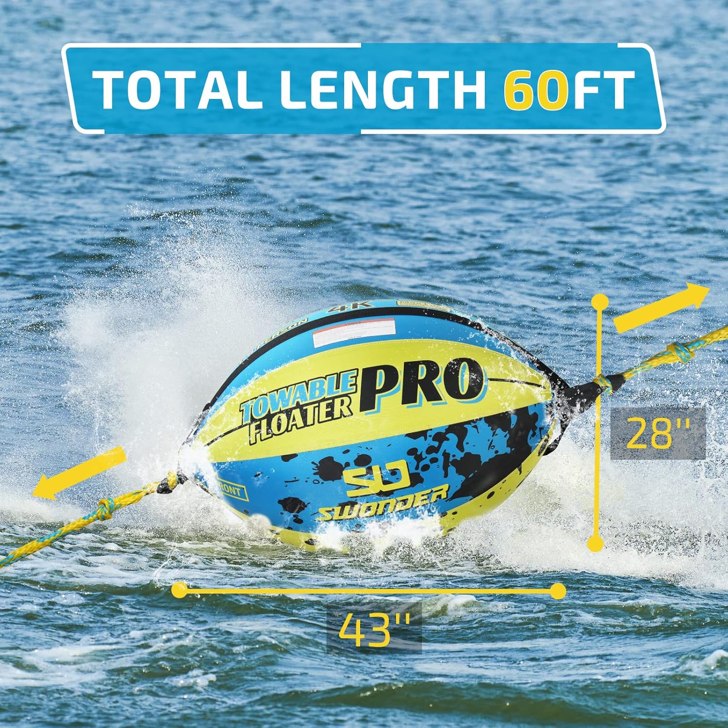 SWONDER Towable Floater PRO, Watersports Towable Ball with Heavy Duty Full Nylon Cover, 60ft Tow Rope for 1-4 Rider Towable Tubes