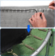 - 【Quick Set-up】-- No need worrying about assembly, the replacement safety net can be easily installed on your trampoline without taking much time and energy. Firstly, you just need to hang the adjustable buckle at the top of the replacement mesh on the rod cap. Next, the bottom can be attached to the trampoline with a rope to connect the net to the trampoline. **(Please note that the net is mounted on the inside of the pole).