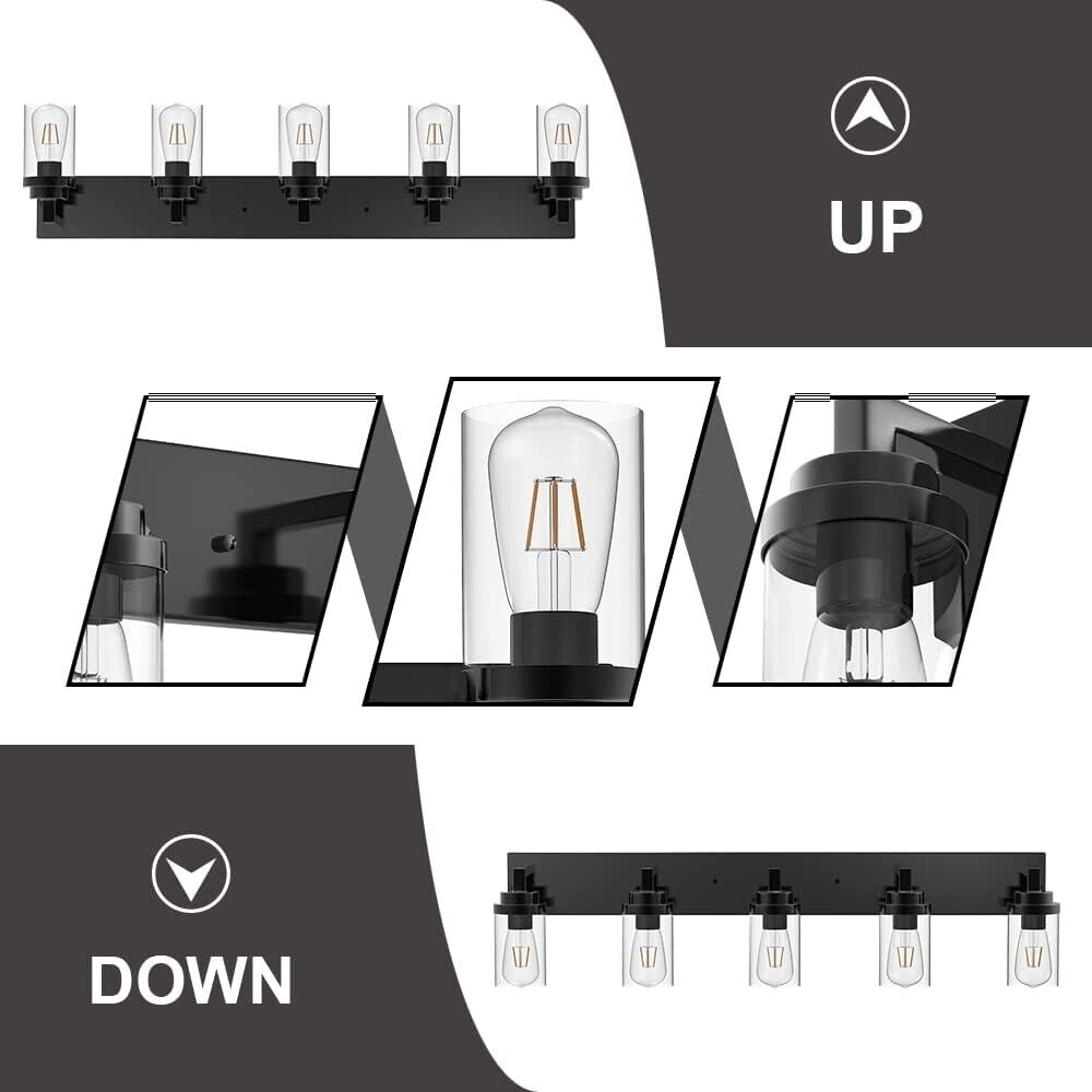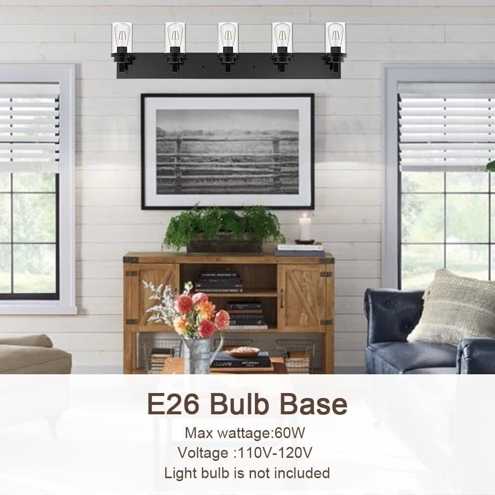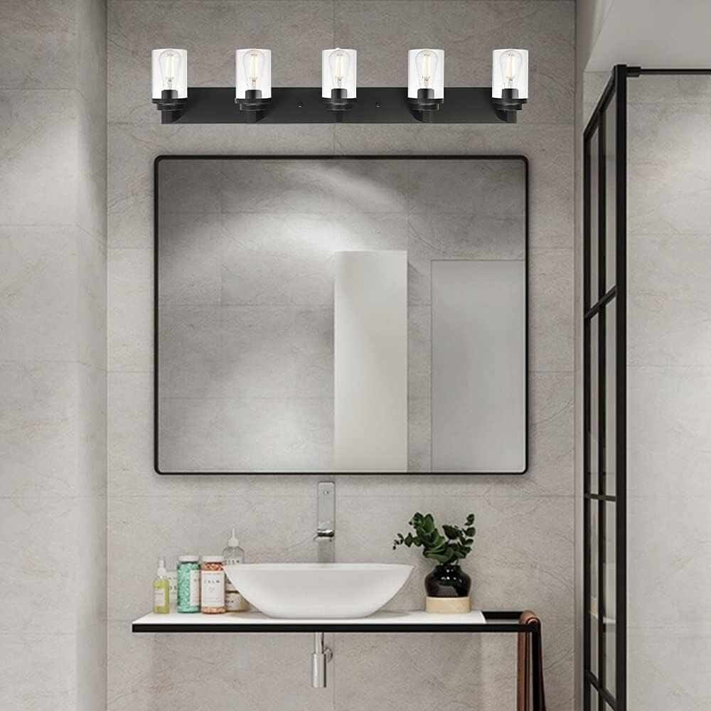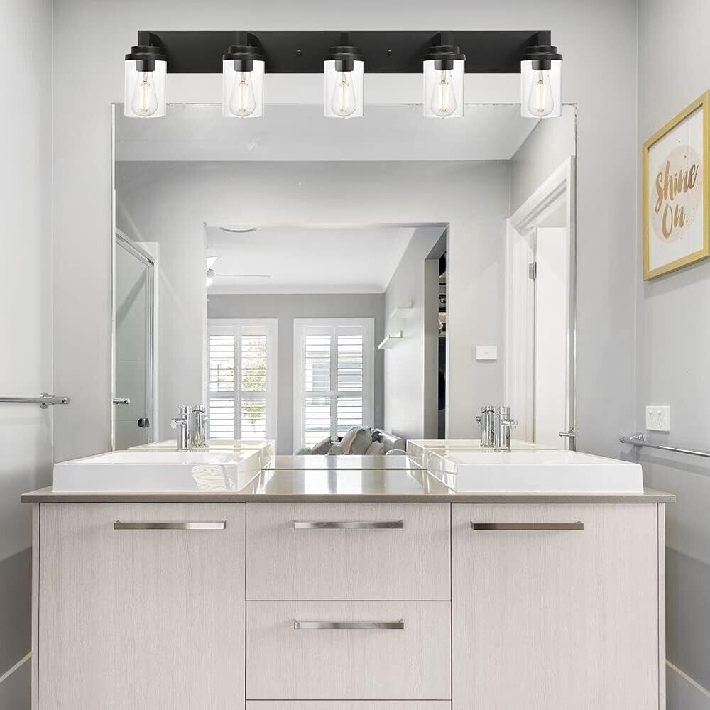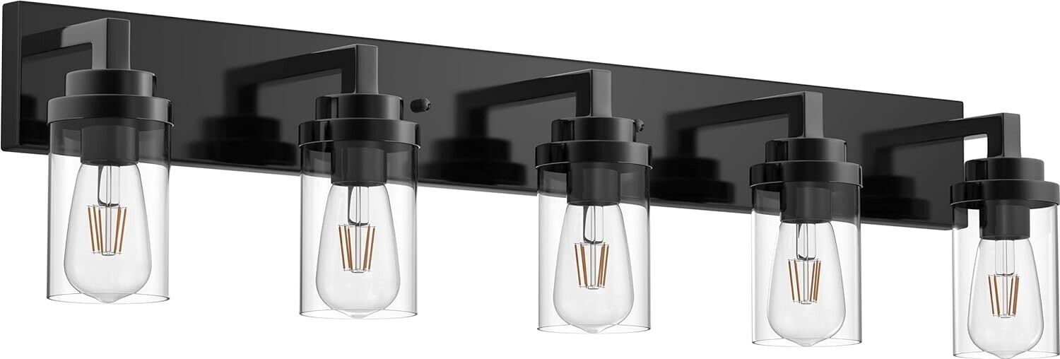 VINLUZ Black Industrial Vanity Light fixture with Clear Glass Shade 5-Lights
