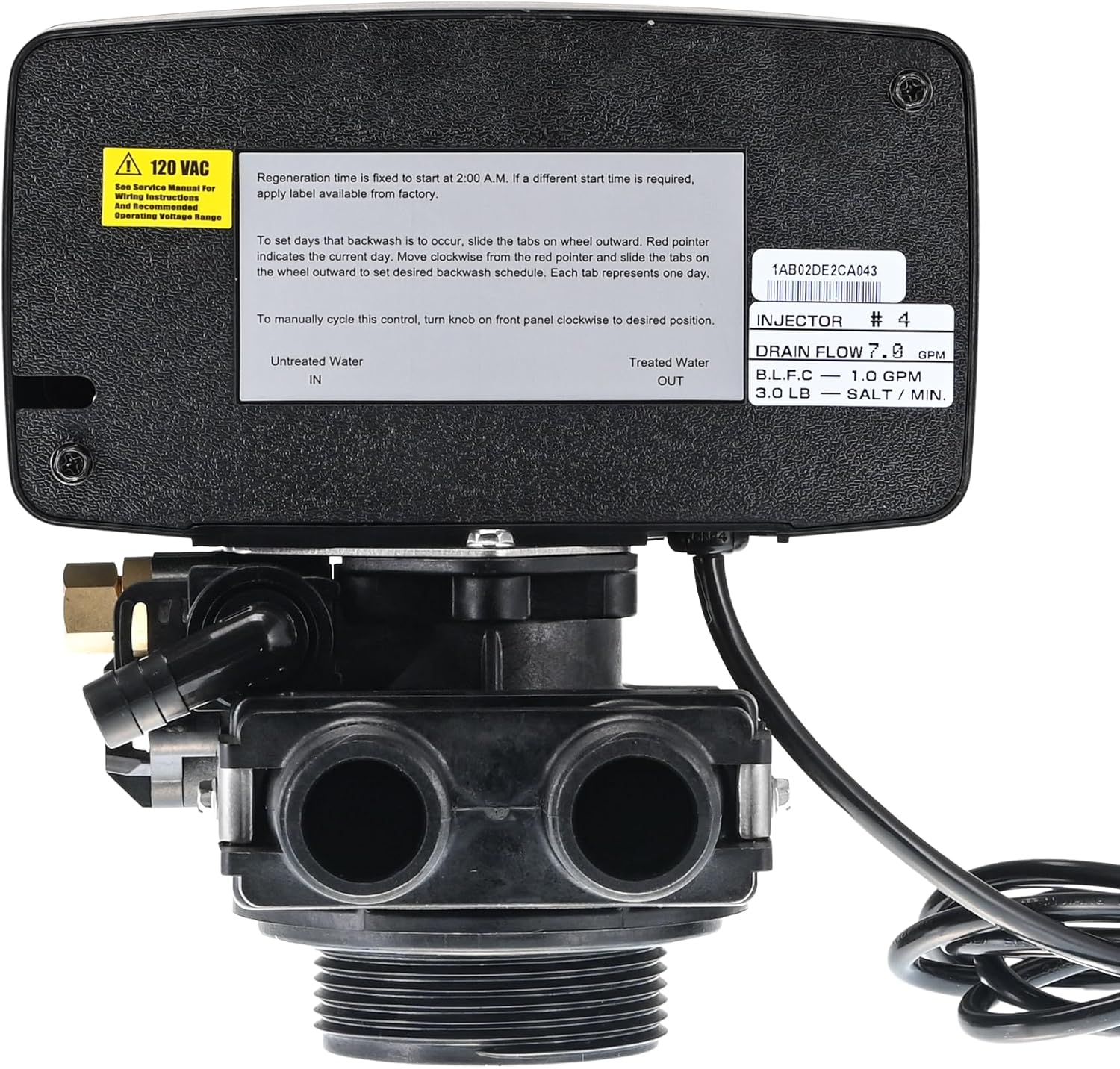 - Water softener valve keeps the time and activates the piston/valve mechanics with a single motor