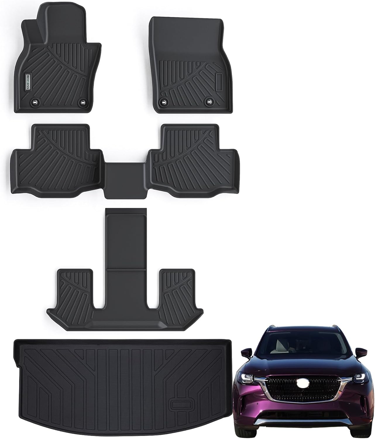 WAYIDSS Floor Mats 3 Rows & Cargo Liner for 2024 Mazda CX-90 6&7 Seats(Both Fit CX90 with and Without 2nd Row Console),TPE All Weather Protection Car Floor Liners & Trunk mat Accessories-Black