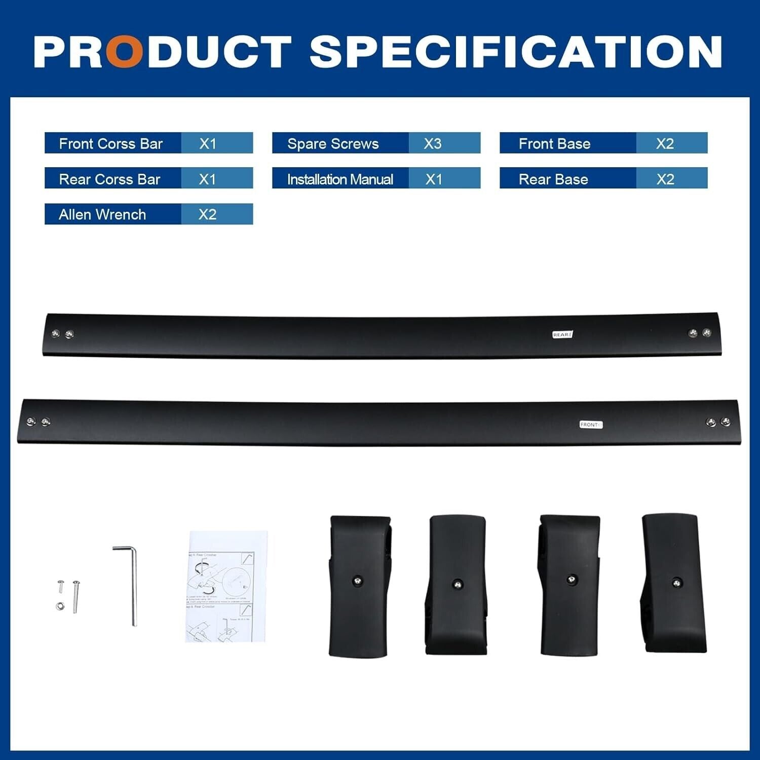 * 【Easy Installation】Absolute breeze to install and it fits like a glove. The easy direction + clear label on the product will provide great assistance to figure out how to install it. Package comes with a pair of crossbars,four mounting bases,screws, spare parts, installation tools and instructions.