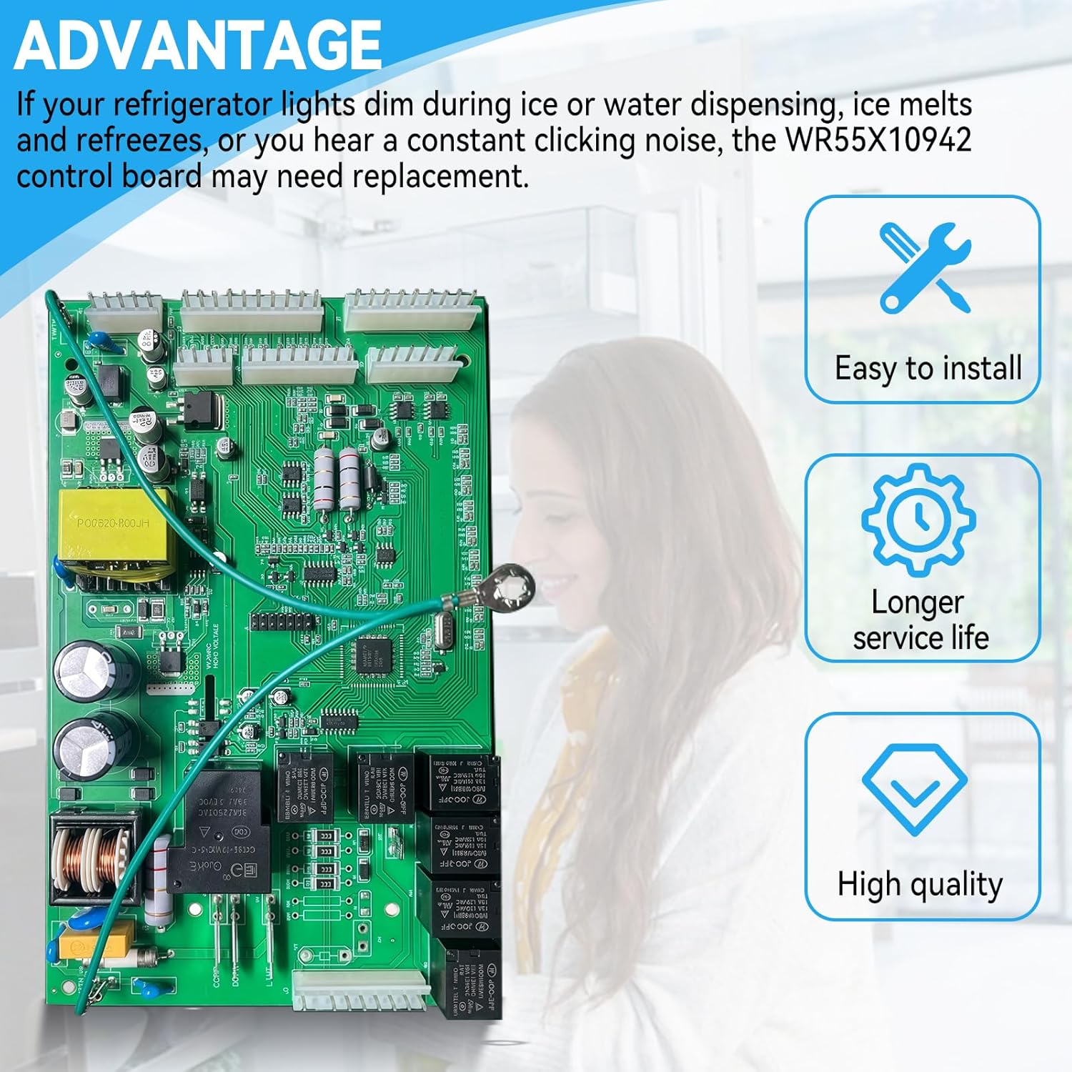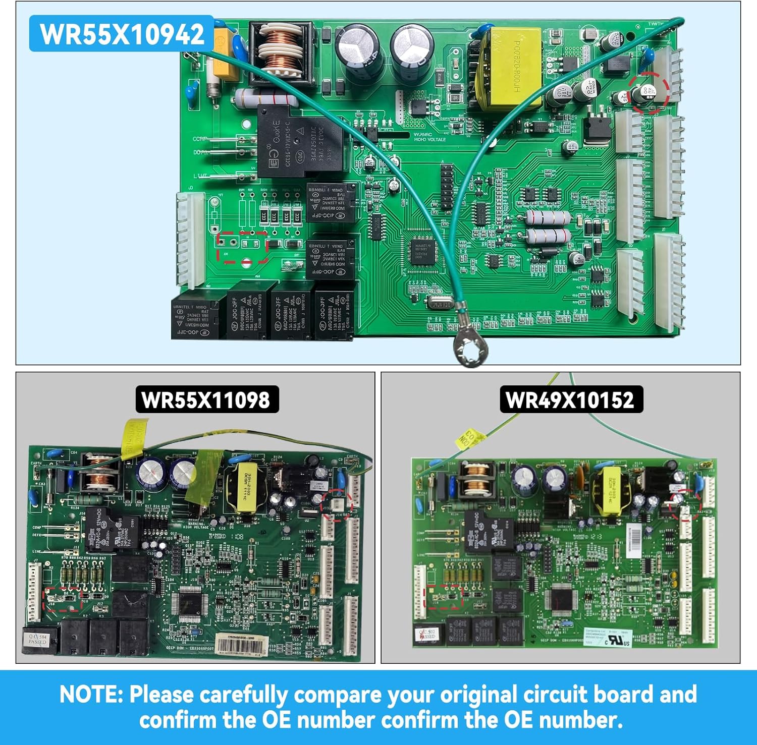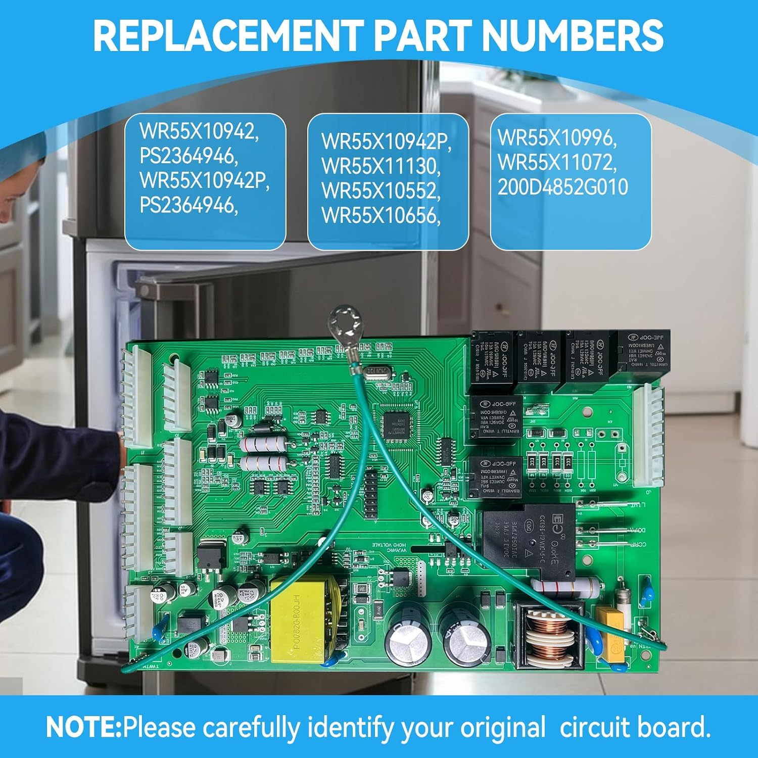 - Replacement Part Numbers: WR55X10942 Replacement Control Board Compatible for GE Refrigerator, PS2364946, WR55X10942P, PS2364946, WR55X10942P, WR55X11130, WR55X10552, WR55X10656, WR55X10996, WR55X11072, 200D4852G010
