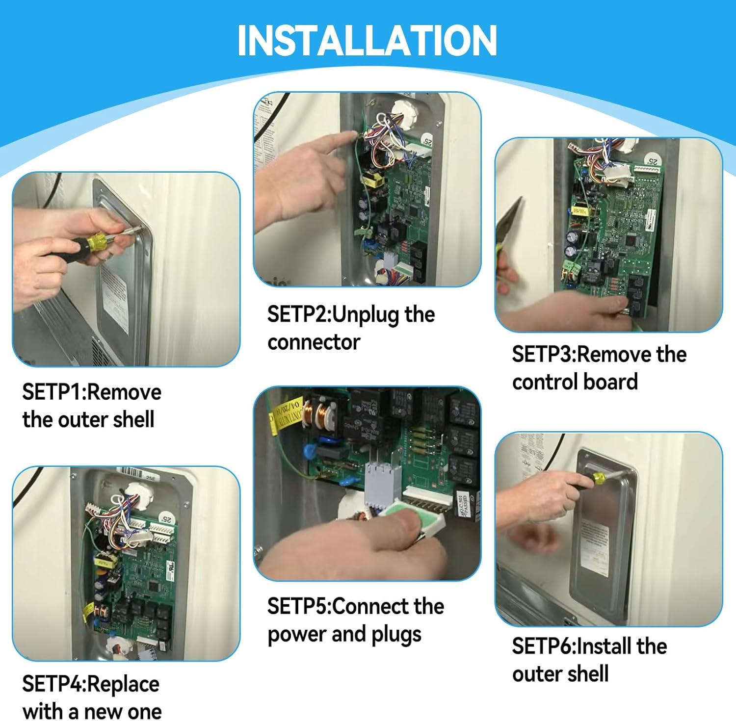 - Plug-and-Play Installation – No Programming Required: Pre-tested and ready to use. Simply disconnect the power, swap the old board, reconnect the wires, and restore power. No coding, no setup – get your refrigerator running again in under 30 minutes.