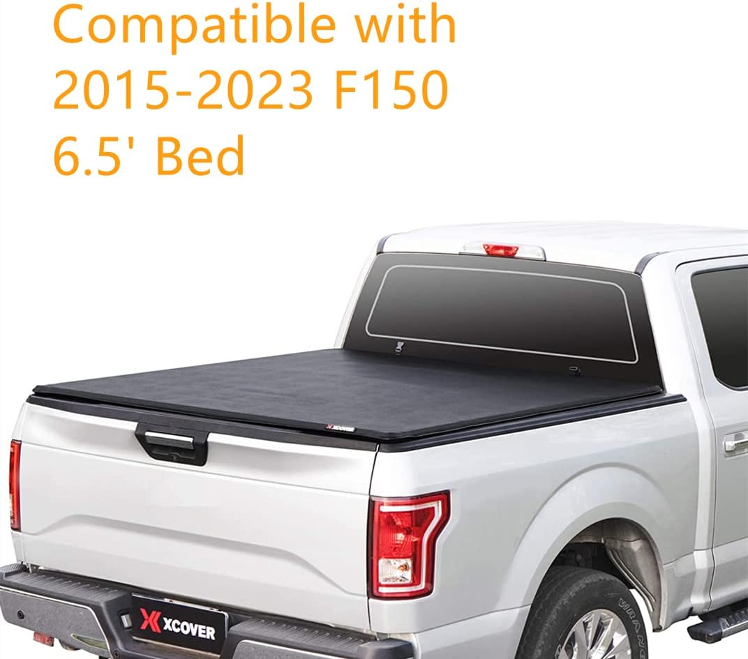 X XCOVER Soft Locking Roll Up Tonneau Cover, Compatible with 2015-2023 F150 Pickup 6.5 Ft Styleside Bed